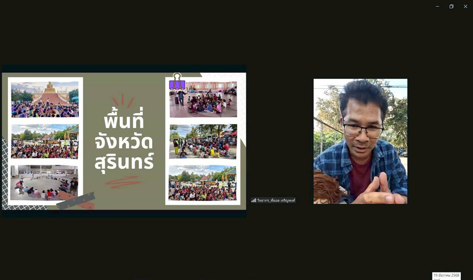 เจริญพงศ์ ชูเลิศ หรือ “ครูยอด” ผู้ก่อตั้งกลุ่มนิทานใบไม้ เล่าถึงประสบการณ์การเป็นผู้ประสบภัยที่ต้องอพยพซ้ำซ้อน พาครอบครัวหนีสงครามชายแดนไทย-กัมพูชา มาอยู่ที่ศูนย์พักพิงศูนย์สมุนไพรอีสานใต้อภัยภูเบศร ต.สำโรง อ.เมือง จ.สุรินทร์ ถึง 3 ครั้งภายในปีเดียว บรรยากาศในศูนย์พักพิงที่เต็มไปด้วยความไม่แน่นอน สภาพปัญหาที่พบคือความยืดเยื้อและความรุนแรงที่เพิ่มขึ้นจนไม่มีใครคาดเดาจุดจบได้