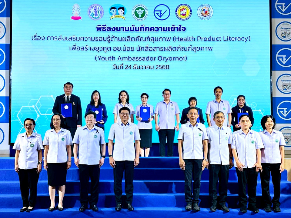 วันที่ 24 ธ.ค.68 นายพัฒนา พร้อมพัฒน์ รัฐมนตรีว่าการกระทรวงสาธารณสุข เป็นประธานแถลงข่าวเปิดตัวกิจกรรม ยุวทูต อย.น้อย (Youth Ambassador Oryornoi) พร้อมเป็นพยานพิธีลงนามบันทึกข้อตกลงความร่วมมือ (MOU) เรื่อง การส่งเสริมความรอบรู้ด้านผลิตภัณฑ์สุขภาพ (Health Product Literacy) เพื่อสร้างยุวทูต อย.น้อย นักสื่อสารผลิตภัณฑ์สุขภาพ ระหว่าง อย. กับสถานศึกษา 4 แห่ง ได้แก่ โรงเรียนเตรียมอุดมศึกษา โรงเรียนสาธิตแห่งมหาวิทยาลัยเกษตรศาสตร์ โรงเรียนเซนต์โยเซฟคอนเวนต์ และโรงเรียนเซนต์คาเบรียล รวมถึงมอบใบประกาศนียบัตรโรงเรียนนำร่องยุวทูต อย.น้อย ในเขตกรุงเทพมหานคร ให้ทั้ง 4 โรงเรียน และสมาคมผู้ปกครองและครูโรงเรียนเตรียมอุดมศึกษา ณ ห้องประชุมชั้น 10 อาคาร OSSC สำนักงานคณะกรรมการอาหารและยา (อย.)