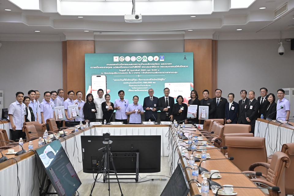 วันนี้ (25 กุมภาพันธ์ 2569) ที่สำนักงานปลัดกระทรวงสาธารณสุข จ.นนทบุรี นายพัฒนา พร้อมพัฒน์ รัฐมนตรีว่าการกระทรวงสาธารณสุข เปิดการแถลงข่าว “กิจกรรมแสดงความจำนงบริจาคอวัยวะและดวงตา ถวายเป็นพระราชกุศลแด่สมเด็จพระนางเจ้าสิริกิติ์ พระบรมราชินีนาถ พระบรมราชชนนีพันปีหลวง” ผ่านระบบทางไกล โดยมี นพ.สมฤกษ์ จึงสมาน ปลัดกระทรวงสาธารณสุข นายเตช บุนนาค เลขาธิการสภากาชาดไทย นายสรพงศ์ ไพฑูรย์พงษ์ อธิบดีกรมขนส่งทางบก กระทรวงคมนาคม พ.ว.สุภาภรณ์ ศรีตั้งศิริกุล ประธานชมรมพยาบาลประสานงานการปลูกถ่ายอวัยวะแห่งประเทศไทย รศ.นพ.สุรศักดิ์ กันตชูเวสศิริ คณะกรรมการบริหาร ฝ่ายประชาสัมพันธ์และรณรงค์การปลูกถ่ายอวัยวะ และ นพ.สุเทพ เพชรมาก เลขาธิการคณะกรรมการสุขภาพแห่งชาติร่วมแถลงข่าว