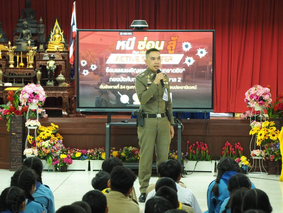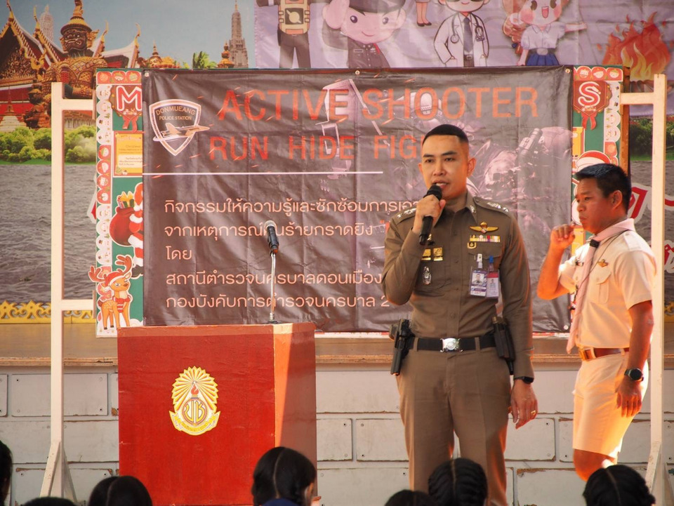 วันนี้ 26 ก.พ.69 เวลา 10.00-12 00 น. ภายใต้การอำนวยการของ พ.ต.อ.วันชัย วงศ์วาณิชอนันต์ ผกก.สน.ดอนเมือง มอบหมายให้ พ.ต.ท.วรภัทร สุขไทย รอง ผกก.ป.สน.ดอนเมือง พ.ต.ท.นราเศรษฐ์ คำสุข สวป.(ชส.) สน.ดอนเมือง พ.ต.ท.อรุณศรี อุดม สวป. สน.ดอนเมือง พร้อมชุด ตชส.,เจ้าหน้าที่ ธุรการ ป.สน.ดอนเมือง,2-0 สายตรวจ และพร้อมเจ้าหน้าที่ตำรวจชุด SWAT ประจำสน.ดอนเมือง ร่วมบรรยายและซ้อมแผนเผชิญเหตุหนี ซ่อน สู้ ณ รร.เปรมประชา แขวงสีกัน เขตดอนเมือง กรุงเทพฯ จำนวนผู้เข้าร่วมกิจกรรม ทั้งครูและผู้ปกครอง ผู้บริหาร และนักเรียน รวม 180 คน