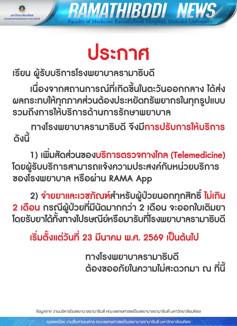ติดตามข้อมูลข่าวสารเพิ่มเติมได้ที่ https://www.rama.mahidol.ac.th