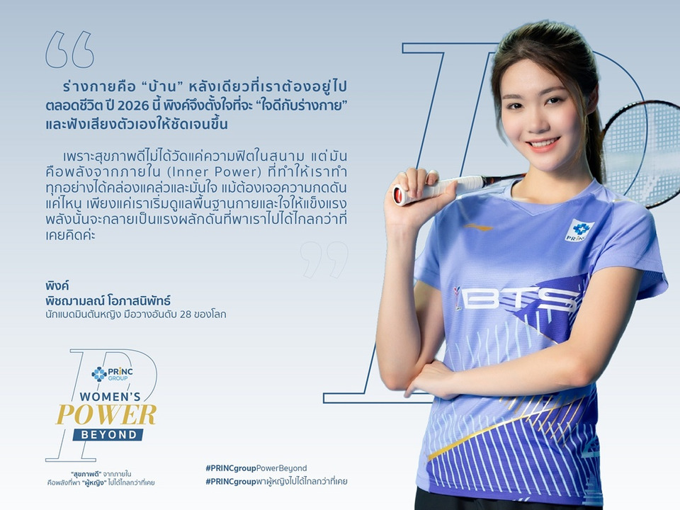 ท่ามกลางจังหวะชีวิตที่รวดเร็วและท้าทายของนักกีฬามืออาชีพ โดยเฉพาะอย่างยิ่ง “กีฬาแบดมินตัน” ที่ได้รับความนิยมจากคนไทยและชาวเอเชีย และ “พิงค์-พิชฌามลณ์ โอภาสนิพัทธ์” คือสาวน้อยอนาคตไกลที่โลดแล่นในวงการมานาน จนได้รับฉายาจากแฟนๆ ว่า “นักแบดหน้าหวาน” โดยเธอเปิดใจกับทีมงาน PRINC Group ในฐานะผู้สนับสนุนหลักมากว่า 8 ปี คือการตั้งเป้าหมาย และเรียนรู้มุมมองใหม่ในปี 2026 คือการเลือกที่จะหันมาฟังเสียงสัญญาณจากร่างกายให้ชัดเจนขึ้นกว่าเดิม สำหรับเธอการมี 'สุขภาพดี' ไม่ได้วัดกันแค่ความแข็งแรงในสนาม แต่มันคือพลังงานจากภายใน (Inner Power) ที่จะพาผู้หญิงคนหนึ่งก้าวไปได้ไกลและยั่งยืนที่สุด