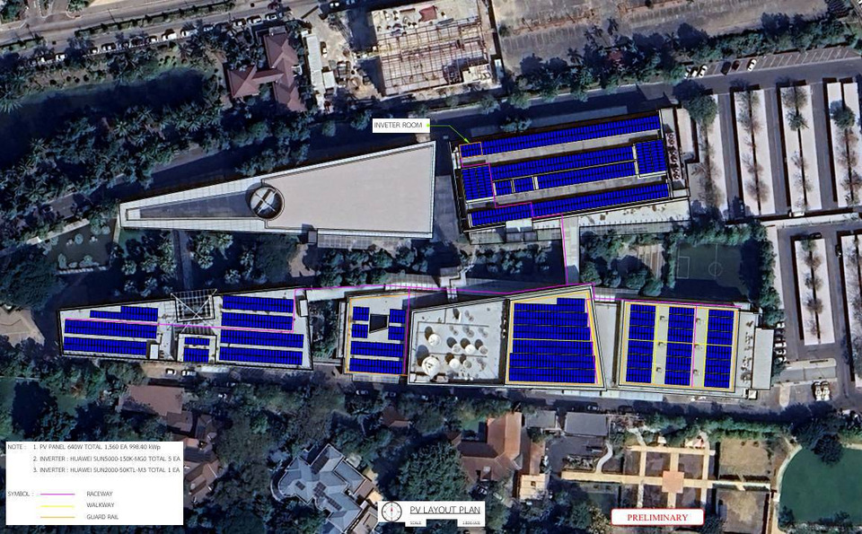 โครงการติดตั้ง Solar Rooftop ครั้งนี้ มีกำลังการผลิตรวม 1 เมกะวัตต์ ใช้เทคโนโลยี Solar PV (Photovoltaic) ซึ่งเป็นระบบผลิตไฟฟ้าจากพลังงานแสงอาทิตย์ที่แปลงพลังงานแสงเป็นไฟฟ้ากระแสตรงผ่านแผงโซลาร์เซลล์ และแปลงเป็นไฟฟ้ากระแสสลับเพื่อใช้งานภายในอาคาร โดยมีระยะเวลาสัญญา 20 ปี จากการประเมินตลอดอายุสัญญา คาดว่าจะสามารถประหยัดค่าไฟฟ้าได้เฉลี่ยประมาณ 149,040 บาทต่อเดือน หรือประมาณ 1,150,743 บาทต่อปี และช่วยลดการปล่อยก๊าซคาร์บอนไดออกไซด์ได้ประมาณ 700 ตันต่อปี