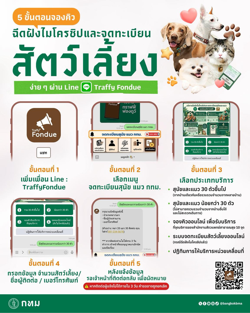 ลงทะเบียนฉีดฝังไมโครชิป และฉีดวัคซีนป้องกันโรคพิษสุนัขบ้าให้เจ้าตัวแสบง่าย ๆ ผ่าน LINE : Traffy Fondue