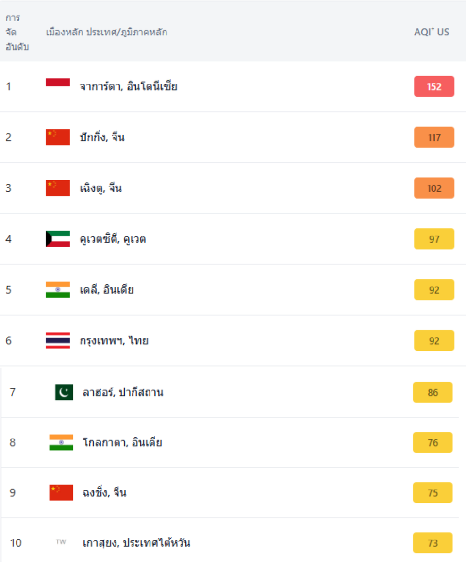 เปิดโผ 10 อันดับเมืองมลพิษสูงสุด: จาการ์ตาพุ่ง ปักกิ่งตามติด