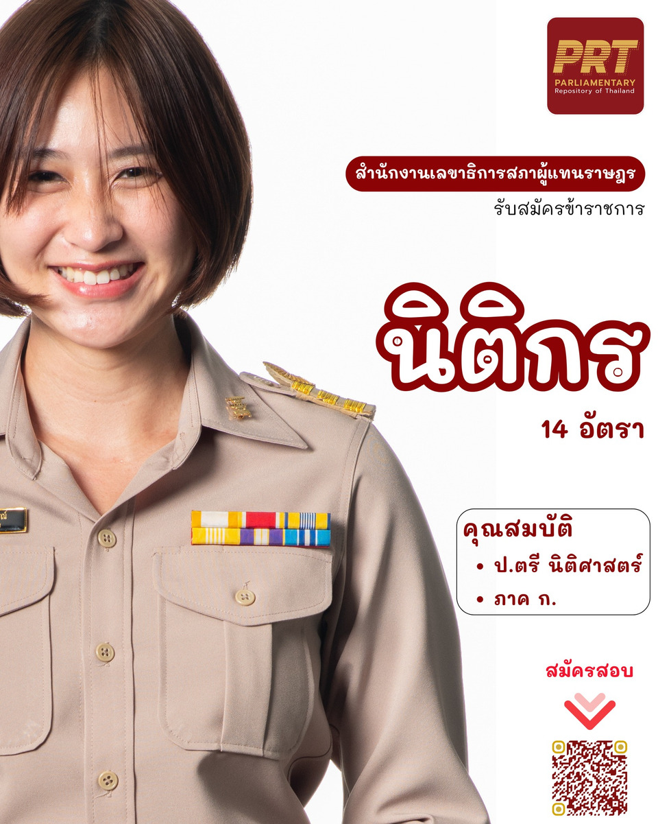 วันที่ 9 เม.ย.69 สำนักงานเลขาธิการสภาผู้แทนราษฎร กำลังตามหา นิติกร รุ่นใหม่ 14 ตำแหน่ง งานดี สวัสดิการเลิศ