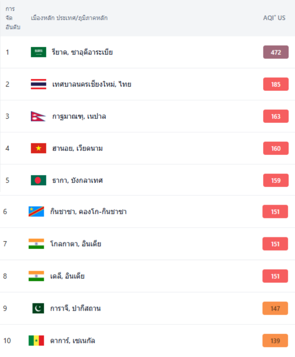 สถานการณ์ฝุ่นควันทั่วโลก: รียาดครองแชมป์ เชียงใหม่ไม่น้อยหน้า
