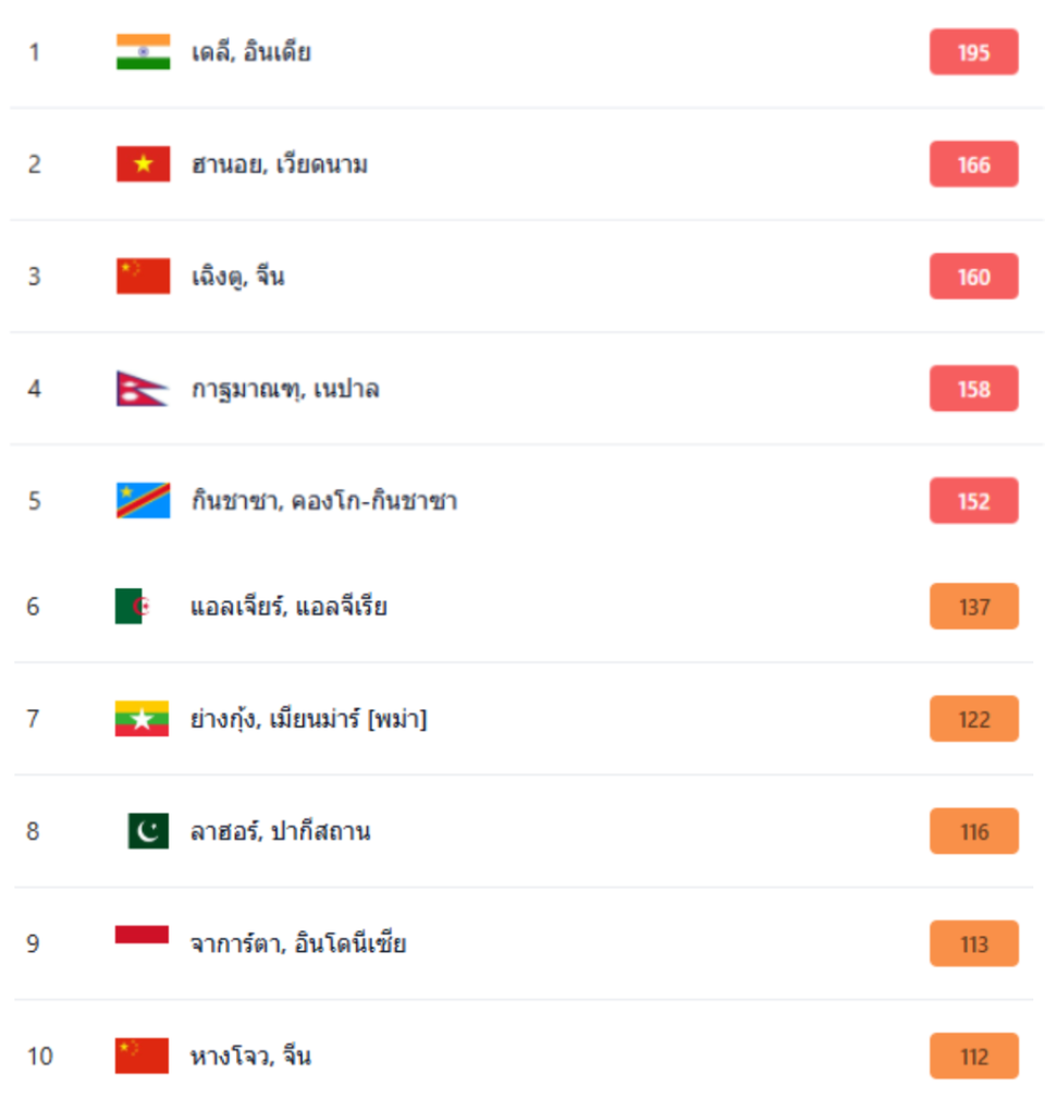 เปิดอันดับ 10 เมืองมลพิษทางอากาศสูงสุดทั่วโลก เช้าวันที่ 26 เม.ย. 69 'เดลี' ครองแชมป์ 'ฮานอย' ตามติด ห่วงผลกระทบสุขภาพและเศรษฐกิจไทย.