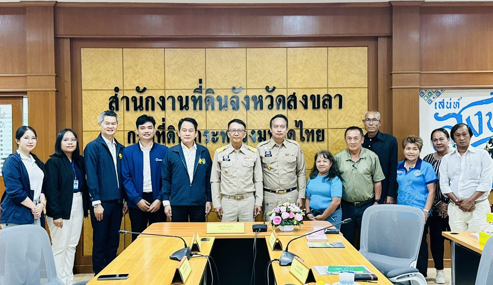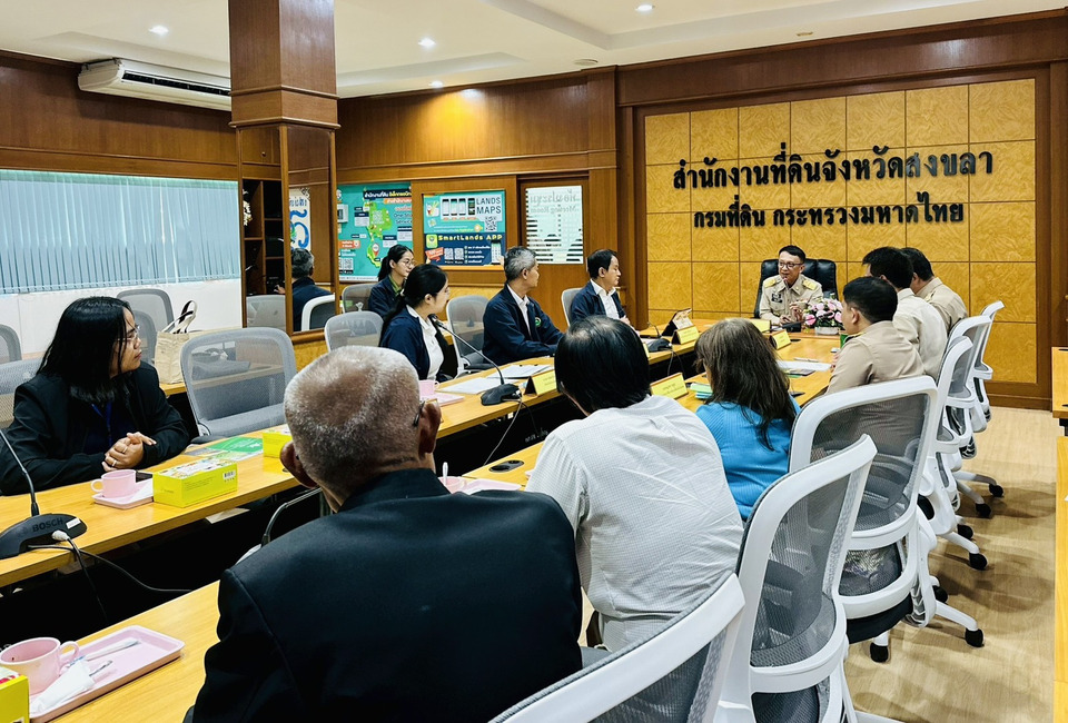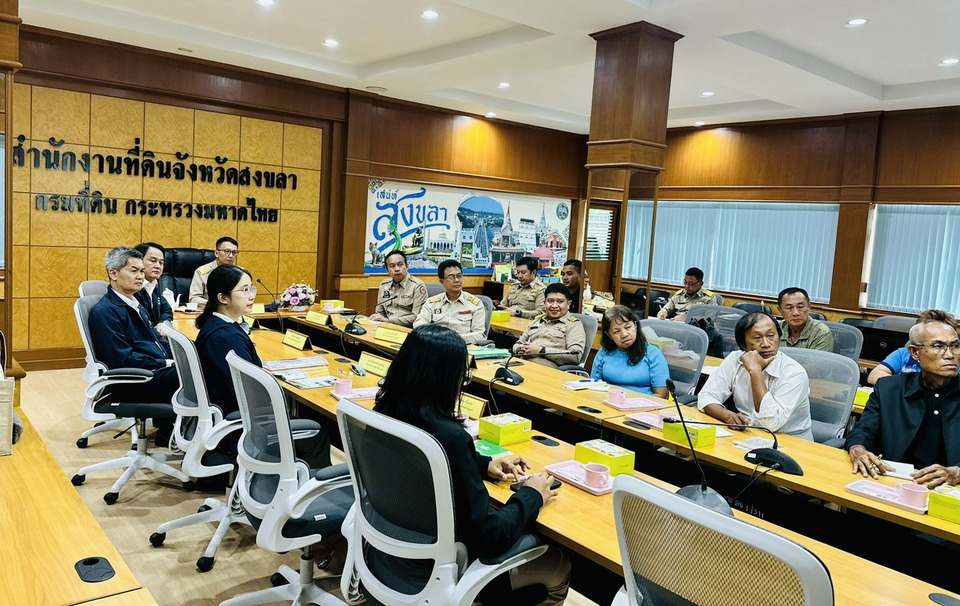เมื่อวันที่ 27 เมษายน 2569 นายกุลพัชร ภูมิใจอวด ผู้อำนวยการสถาบันบริหารจัดการธนาคารที่ดิน นายสุทธิรักษ์ อุฒมนตรี ผอ.กองประชาสัมพันธ์และสื่อสารองค์กร ปฏิบัติหน้าที่แทนผอ.กองบริหารสินเชื่อ ป้องกันและแก้ไขปัญหาการสูญเสียสิทธิในที่ดิน และเจ้าหน้าที่ ลงพื้นที่จังหวัดสงขลา เพื่อประชุมชี้แจงภารกิจและแนวทางการดำเนินงานร่วมกับหน่วยงานในท้องถิ่น นำโดย นายประทีป อุ่ยเจริญ ปลัดจังหวัดสงขลา นายวินิจ เทพนิต นายอำเภอเมืองสงขลา นายอรรถวุฒิ มูลศิริ เจ้าพนักงานที่ดินจังหวัดสงขลา ผู้แทนสถาบันพัฒนาองค์กรชุมชน (พอช.) และเครือข่ายเกษตรกร เพื่อประสานความร่วมมือในการแก้ไขปัญหาที่ดินทำกินอย่างยั่งยืน