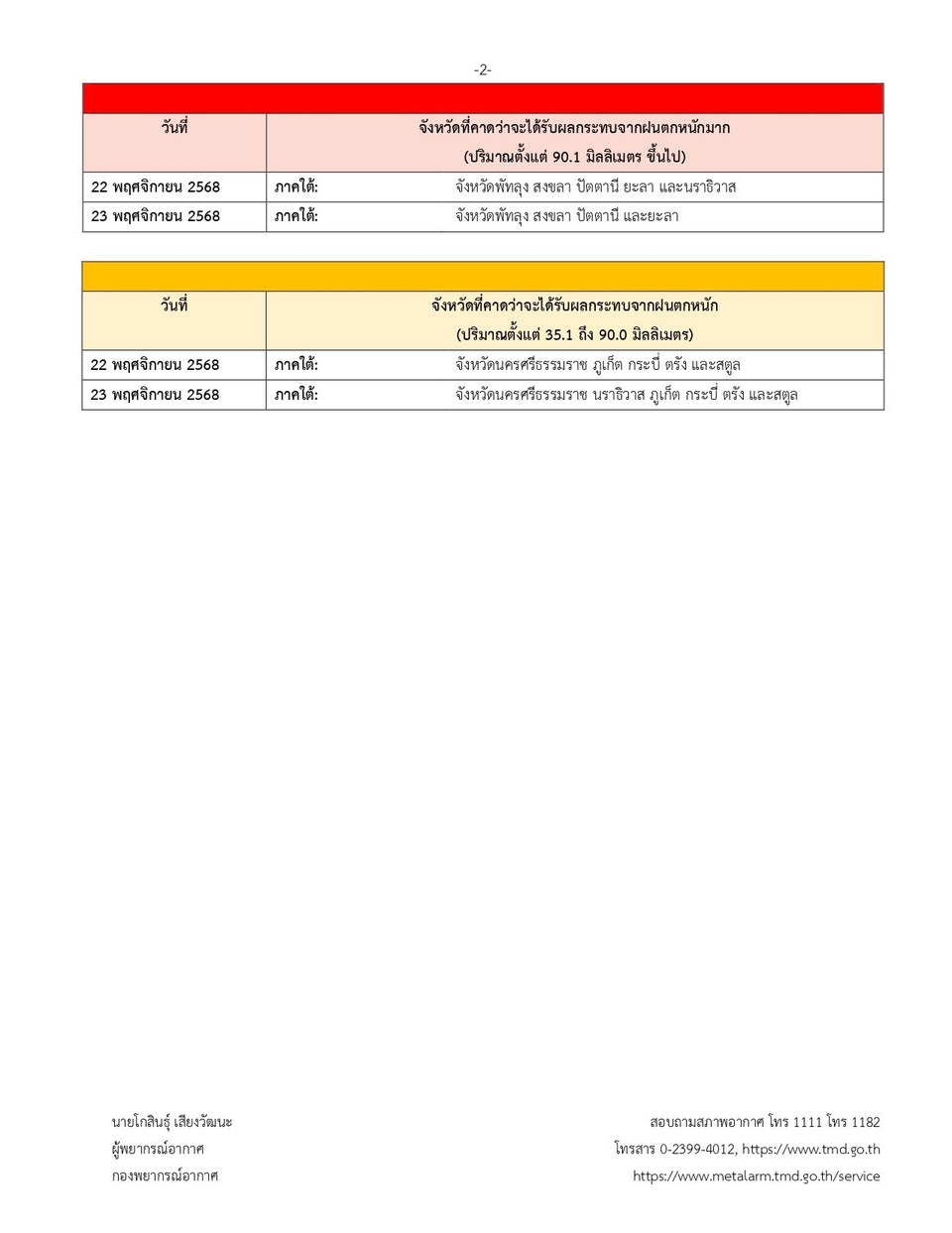 กรมอุตุนิยมวิทยาจะออกประกาศฉบับต่อไปในวันที่ 23 พฤศจิกายน พ.ศ. 2568 เวลา 05.00 น.