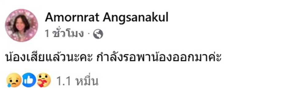 ล่าสุดได้ออกมาแจ้งว่า "น้องเสียแล้วนะคะ กำลังรอพาน้องออกมาค่ะ"