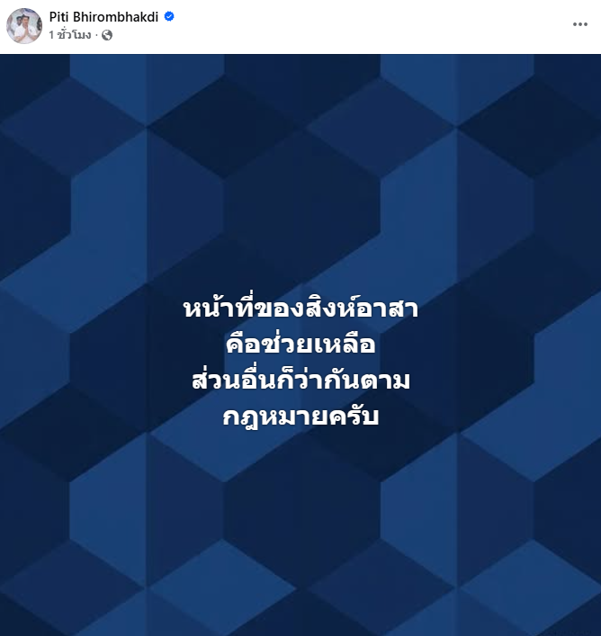 ล่าสุด ต๊อด-ปิติ ภิรมย์ภักดี ทายาทตระกูลภิรมย์ภักดี โพสต์ข้อความสั้นๆ ระบุว่า "หน้าที่ของสิงห์อาสา คือ ช่วยเหลือ ส่วนอื่นก็ว่ากันตามกฎหมายครับ"