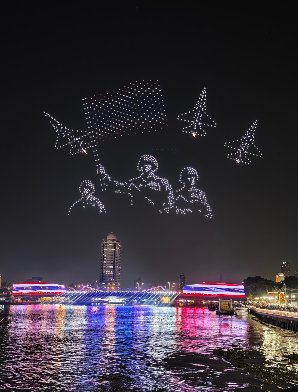 วันที่ 20 ธ.ค.68 นายสมชัย ศรีสุทธิยากร อดีตคณะกรรมการการเลือกตั้ง โพสต์ภาพผ่านเฟซบุ๊ก ปั่นไปไหน - สมชัย ศรีสุทธิยากร พร้อมระบุข้อความว่า "การแสดงโดรน วิจิตรเจ้าพระยา 19 ธันวาคม 2568 บริเวณสะพานพุทธ มีภาพเกือบสุดท้าย ที่สวยงาม มีความหมาย เรียกเสียงปรบมือจากคนชม"