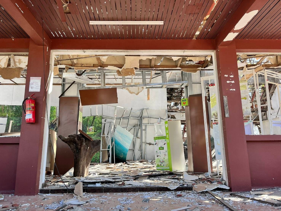บริเวณที่ทำการอุทยานเขาพระวิหาร ถูกกระสุน BM-20 40 ลูก พบความเสียหาย จำนวน 5 จุด ได้แก่