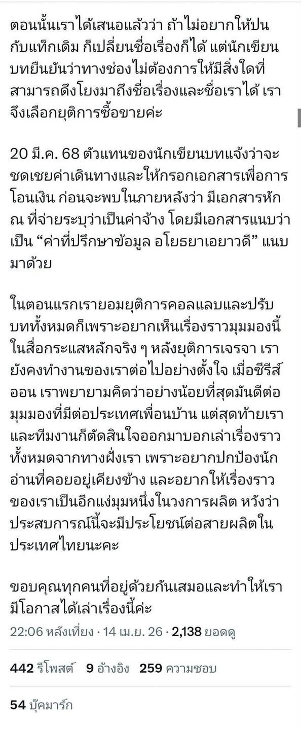 ดราม่าลิขสิทธิ์เดือด! นักเขียน “อโยธยาเอยาวดี” แฉไทม์ไลน์ดีลซีรีส์สะเทือนโซเชียล