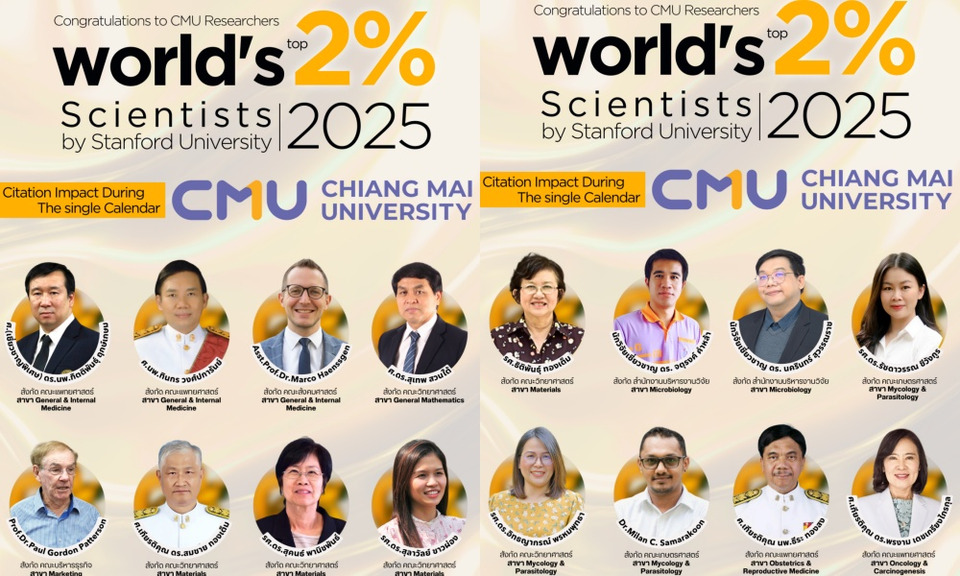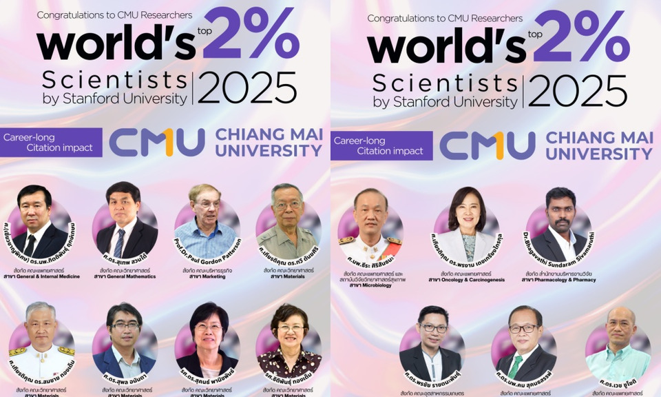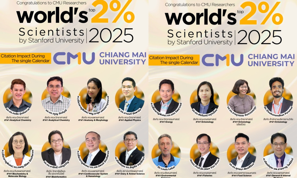 #มหาวิทยาลัยเชียงใหม่ #นักวิจัยมช #WorldsTop2Scientists #นักวิทยาศาสตร์ระดับโลก #เชียงใหม่มหาวิทยาลัย #CMU #ChiangMaiUniversity #นักวิจัยไทย #Top2PercentScientists #StanfordUniversity #วิทยาศาสตร์ไทย #คนไทยระดับโลก