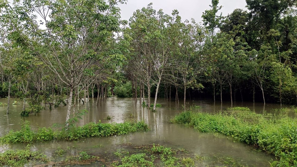 วันที่ 21 พ.ย.68 นายดิษฐเดช วัฒนาพร รองผู้ว่าการด้านปฏิบัติการ กล่าวว่า จากสถานการณ์ฝนตกหนักต่อเนื่องในพื้นที่หลายจังหวัดทางภาคใต้ ได้แก่ จ.นครศรีธรรมราช จ.พัทลุง จ.ชุมพร จ.สุราษฎร์ธานี จ.ตรัง จ.สงขลา และ จ.สตูล ส่งผลให้เกิดน้ำท่วมและน้ำป่าไหลหลากเข้าพื้นที่การเกษตรอย่างรุนแรง โดยเฉพาะพื้นที่ปลูกยางพารา กยท. คาดว่าจะมีปริมาณผลผลิตยางที่ได้รับผลกระทบจากสถานการณ์ฝนตกหนักต่อเนื่องทั้ง 7 จังหวัด รวมกว่า 10,296.93 ตันในส่วนจังหวัดที่ได้รับผลกระทบจากสถานการณ์อย่างรุนแรง ได้แก่ จ.นครศรีธรรมราช และ จ.พัทลุง ครอบคลุมในหลายอำเภอ อาทิ อ.ร่อนพิบูลย์ อ.ทุ่งสง และ อ.ฉวาง ใน จ.นครศรีธรรมราช และ อ.ควนขนุน อ.ป่าพะยอม และ อ.ศรีบรรพต ใน จ.พัทลุง สร้างความเดือดร้อนต่อชาวสวนยางและประชาชนหลายพื้นที่และมีต่อปริมาณผลผลิตยาง โดยเบื้องต้น กยท. คาดการณ์ว่าจะมีพื้นที่สวนยางใน 2 จังหวัดดังกล่าวได้รับผลกระทบ เป็นพื้นที่รวมกว่า 83,580 ไร่ และมีเกษตรกรชาวสวนยางได้รับผลกระทบ รวมกว่า 14,800 ราย (ข้อมูล ณ วันที่ 20 พ.ย. 68)