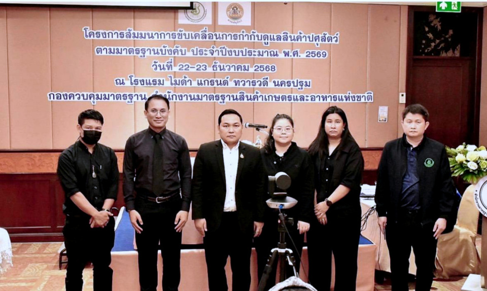 สำหรับปีงบประมาณ 2569 มกอช. โดยกองควบคุมมาตรฐาน ในฐานะหน่วยงานกำกับดูแลการดำเนินการตามมาตรฐานบังคับ ได้จัดสัมมนาการขับเคลื่อนการกำกับดูแลสินค้าปศุสัตว์ตามมาตรฐานบังคับ ระหว่างวันที่ 22-23 ธันวาคม 2568 ณ โรงแรมไมด้า แกรนด์ ทวารวดี อำเภอเมือง จังหวัดนครปฐม โดยมีนายกิตติเกษม นิ่มสะอาด ผู้อำนวยการกองควบคุมมาตรฐาน เป็นประธาน เปิดการสัมมนาฯ และมีเจ้าหน้าที่จากกรมปศุสัตว์ทั้งส่วนกล่าง ส่วนภูมิภาค และเจ้าหน้าที่ มกอช. เข้าร่วมการสัมมนา จำนวน 80 คน