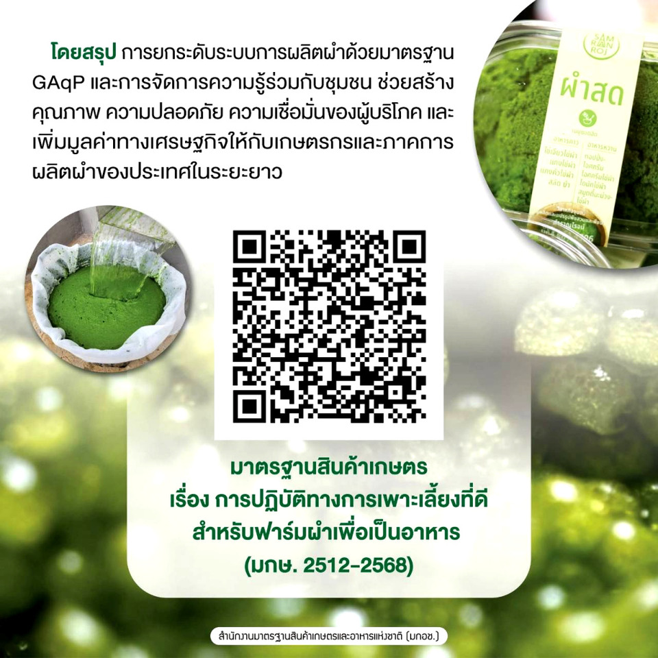 “ทั้งนี้ ข้อมูลและข้อคิดเห็นที่ได้รับจากการระดมสมองในครั้งนี้ มกอช. จะนำไปปรับปรุงร่างมาตรฐานสินค้าเกษตรให้มีความสมบูรณ์และเหมาะสมกับบริบทการผลิตจริง ก่อนที่จะประกาศใช้เป็นมาตรฐานของประเทศไทยอย่างเป็นทางการ เพื่อขับเคลื่อนอุตสาหกรรมผำไทยให้เติบโตอย่างยั่งยืนในตลาดโลกต่อไป