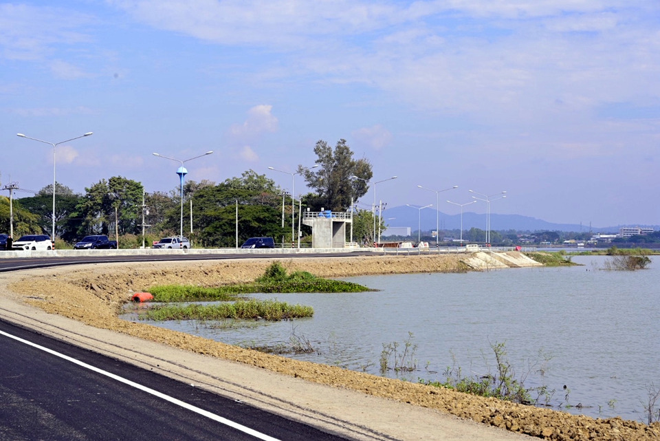สำหรับงานก่อสร้างถนนรอบกว๊านพะเยา ประกอบด้วยการปรับระดับคันดิน การเทผิวจราจรแอสฟัลต์คอนกรีต การติดตั้งระบบระบายน้ำ และระบบไฟฟ้าแสงสว่างตลอดแนวถนน เพื่ออำนวยความสะดวกและเพิ่มความปลอดภัยในการสัญจรของประชาชนและนักท่องเที่ยว โครงการดังกล่าวยังมีบทบาทสำคัญในการเสริมความมั่นคงของคันกั้นน้ำ เพิ่มประสิทธิภาพการบริหารจัดการน้ำ ควบคู่ไปกับการส่งเสริมการท่องเที่ยว การคมนาคม และการอนุรักษ์สิ่งแวดล้อม โดยช่วยป้องกันการบุกรุกพื้นที่ชุ่มน้ำและจัดระเบียบการใช้ประโยชน์ที่ดินรอบกว๊านพะเยาอย่างเป็นระบบ
