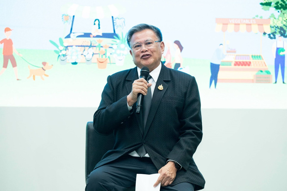 ด้าน ดร.ดำรงค์ ศรีพระราม อธิการบดีมหาวิทยาลัยเกษตรศาสตร์ กล่าวเสริมถึงบทบาทในฐานะผู้ดูแล “ต้นน้ำ” ว่า มหาวิทยาลัยเกษตรศาสตร์พร้อมนำเสนอ Green Innovation หรือนวัตกรรมสีเขียว เพื่อเปลี่ยนภาพจำสู่ “เกษตรแม่นยำและเป็นมิตรต่อโลก” (Climate-Smart Agriculture) “เจตนารมณ์ของเราคือการนำองค์ความรู้เกษตรสมัยใหม่ มาเชื่อมต่อกับสุขภาวะ เพราะเราเชื่อว่า ‘อาหารเป็นยา’ และ ‘สิ่งแวดล้อมที่ดีคือวัคซีนที่ดีที่สุด’ โดยในงานจะมีการจัดแสดงนวัตกรรมอาหารแห่งอนาคต (Future Food) และเทคโนโลยีการปรับปรุงพันธุ์พืชรองรับการเปลี่ยนแปลงสภาพภูมิอากาศ เพื่อให้งานนี้เป็นต้นแบบของ Green Fair ที่ใส่ใจโลกอย่างยั่งยืน”