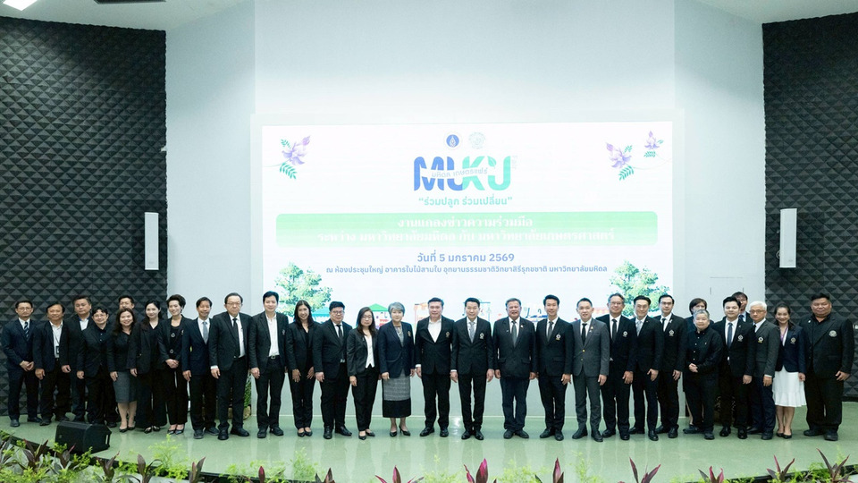 วันที่ 9 ม.ค.69 มหาวิทยาลัยมหิดล จับมือ มหาวิทยาลัยเกษตรศาสตร์ ประกาศความร่วมมือครั้งประวัติศาสตร์ จัดงาน “มหิดล-เกษตรแฟร์ 2569” (MU x KU Fair 2026) ระหว่างวันที่ 14-18 มกราคม 2569 ณ มหาวิทยาลัยมหิดล ศาลายา พลิกโฉมงานแฟร์สู่ “ห้องเรียนไร้กำแพง” ภายใต้แนวคิด “ร่วมปลูก ร่วมเปลี่ยน” (Grow Together, Change Together) ผสานความแกร่ง “การแพทย์” และ “เกษตรกรรม” สร้างระบบนิเวศสุขภาพครบวงจร พร้อมโชว์ศักยภาพนวัตกรรมสีเขียวเพื่อขับเคลื่อนสังคมไทยสู่ยุค Carbon Neutrality