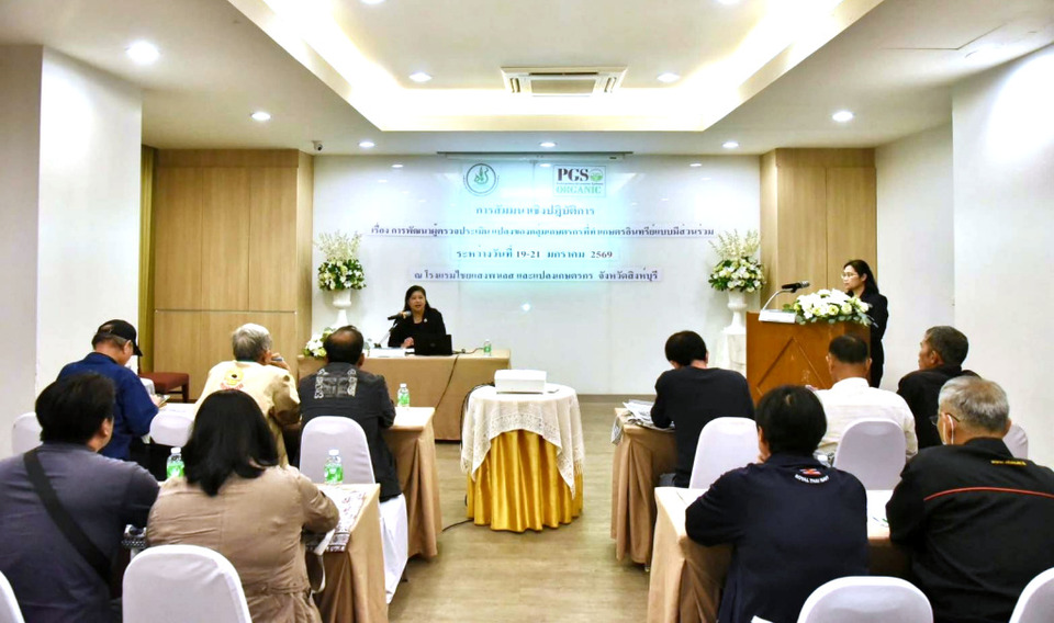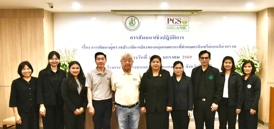 ทั้งนี้ มกอช. โดยกองรับรองมาตรฐาน ได้ดำเนินโครงการยกระดับเกษตรอินทรีย์แบบมีส่วนร่วม (Participatory Guarantee System: PGS) ซึ่งเป็นระบบการรับรองที่เน้นความไว้วางใจ ความโปร่งใส และการมีส่วนร่วมของชุมชน โดยในปีงบประมาณ 2569 ได้สำรวจพื้นที่และคัดเลือกกลุ่มเกษตรกรที่มีความพร้อมในจังหวัด สิงห์บุรี เข้าร่วมกิจกรรมสัมมนาเชิงปฏิบัติการ “การพัฒนาผู้ตรวจประเมินแปลงของกลุ่มเกษตรกรที่ทำเกษตรอินทรีย์แบบมีส่วนร่วม” เพื่อเสริมศักยภาพกลุ่มผู้ผลิตให้สามารถตรวจสอบและรับรองกันเองได้อย่างมีประสิทธิภาพ สอดคล้องกับหลักมาตรฐานสากล