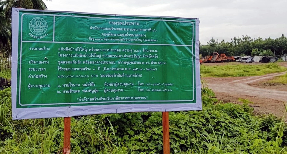 ในส่วนของข้อสังเกตเรื่องป้ายโครงการและสำนักงานสนาม กรมชลประทานขอชี้แจงว่า โครงการมีการติดตั้งป้ายและจัดตั้งสำนักงานสนามตั้งแต่เริ่มดำเนินการ แต่เนื่องจากเกิดอุทกภัยในพื้นที่เมื่อช่วงเดือนพฤศจิกายน 2568 ที่ผ่านมา ส่งผลให้ป้ายโครงการและสำนักงานสนามได้รับความเสียหาย ปัจจุบันอยู่ระหว่างดำเนินการติดตั้งป้ายใหม่