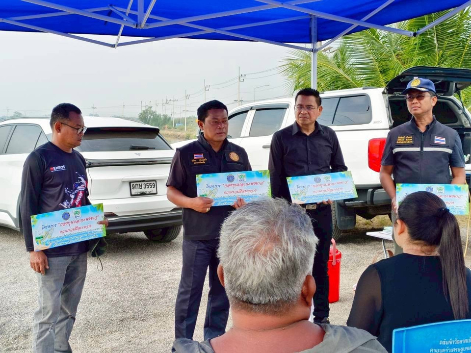 วันที่ 31 ม.ค.69 นายนิรุตน์ เถาแตง ประธานกลุ่มเกษตรกรฯ ” หมู่ที่ 4 ต.ยี่สาร อ.อัมพวา จ.สมุทรสงคราม นำคณะเกษตรกรมอบรายได้จากการจำหน่ายปลากะพง ภายใต้โครงการ“กองทุนปลากะพงขาว” แก่ประมงจังหวัดสมุทรสาคร เพื่อไปสมทบกองทุนฯ เพื่อใช้จัดหาลูกพันธุ์ปลากะพงขาวแจกจ่ายให้สมาชิกรายอื่นใช้กำจัดลูกปลาหมอคางดำด้วยวิถีธรรมชาติ