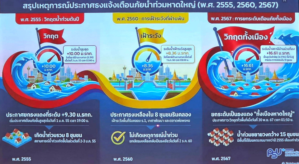 “เวทีเสวนาในครั้งนี้มุ่งเน้น การถอดบทเรียนปัจจัยทางอุทกวิทยาที่ทำให้เกิดน้ำท่วมรุนแรง การแลกเปลี่ยนประสบการณ์บริหารจัดการวิกฤตระหว่างสองพื้นที่ และการรวบรวมข้อเสนอแนะเชิงนโยบาย ทั้งในด้านการวางผังเมือง การพัฒนาระบบเตือนภัยด้วยเทคโนโลยีสมัยใหม่ และการปรับปรุงโครงสร้างพื้นฐาน เพื่อสร้างความตระหนักรู้ให้ประชาชนสามารถปรับตัวและอาศัยอยู่กับน้ำได้อย่างปลอดภัยและยั่งยืนในอนาคต” นายกสมาคมนักอุทกวิทยาไทย กล่าว