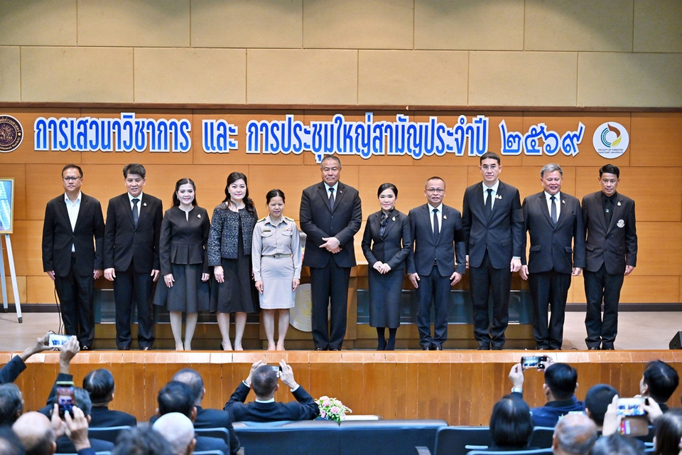 ม.เกษตรฯ ร่วมกับสมาคมศิษย์เก่าวนศาสตร์และคณะวนศาสตร์ จัดเสวนาวิชาการ “ป่าเกื้อคน คนรักษาป่า” เพื่อสืบสานพระราชปณิธานของสมเด็จพระพันปีหลวง มุ่งสร้างความสมดุลระหว่างคนกับป่า โดยมีองคมนตรีเป็นประธานเปิด พร้อมเวทีแลกเปลี่ยนองค์ความรู้จากภาครัฐ ชุมชน และสื่อ เพื่อขับเคลื่อนการอนุรักษ์ทรัพยากรธรรมชาติอย่างยั่งยืน