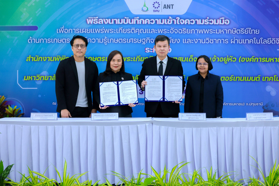 วันที่ 31 มี.ค.69 สำนักงานพิพิธภัณฑ์เกษตรเฉลิมพระเกียรติพระบาทสมเด็จพระเจ้าอยู่หัว (องค์การมหาชน) จัดพิธีลงนามบันทึกความเข้าใจความร่วมมือ (MOU) ร่วมกับ มหาวิทยาลัยธุรกิจบัณฑิตย์ โดยวิทยาลัยครีเอทีฟดีไซน์ แอนด์ เอ็นเตอร์เทนเมนต์เทคโนโลยี เพื่อร่วมกันพัฒนาและเผยแพร่พระเกียรติคุณและพระอัจฉริยภาพพระมหากษัตริย์ไทยด้านการเกษตร องค์ความรู้เกษตรเศรษฐกิจพอเพียง และงานวิชาการ ผ่านเทคโนโลยีดิจิทัล ความร่วมมือครั้งนี้มุ่งยกระดับพิพิธภัณฑ์สู่ “แหล่งเรียนรู้เกษตรเศรษฐกิจเชิงดิจิทัล” ที่ทันสมัย โดยจะพัฒนา สื่อดิจิทัล นวัตกรรมการเรียนรู้ และกิจกรรมเชิงประสบการณ์ เพื่อให้ประชาชนสามารถเข้าถึงองค์ความรู้ได้ง่าย สนุก และนำไปใช้ได้จริง