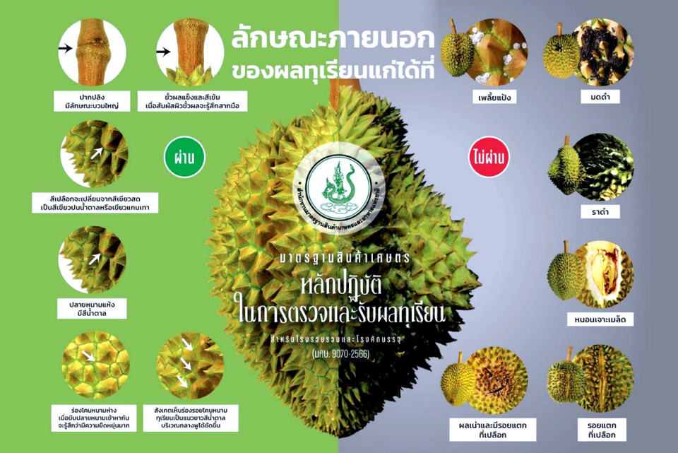 ข้อกำหนดของมาตรฐาน ได้แก่ การตรวจรับผลทุเรียนสดของโรงคัดบรรจุทุเรียนสด (ล้ง) ความรู้ความสามารถของผู้ตรวจสอบความแก่-อ่อนของทุเรียน (QC ล้ง) รวมถึงการบันทึกข้อมูลการปฏิบัติงาน อีกทั้งทำการสุ่มตรวจเปอร์เซ็นต์น้ำหนักเนื้อแห้งของทุเรียน (%แป้ง) ในกรณีที่พบทุเรียนอ่อนจะสั่งให้โรงคัดบรรจุทุเรียนผลสด (ล้ง) คัดแยกทุเรียนอ่อนออก และสั่งห้ามมิให้นำไปจำหน่ายเพื่อการบริโภค และทำบันทึกตักเตือนให้ดำเนินการตามข้อกำหนดของมาตรฐานดังกล่าวอย่างเข้มงวด อีกทั้งแจ้งบทกำหนดโทษของมาตรการพักใช้หรือเพิกถอนใบอนุญาต หากมีการตรวจพบการกระทำผิดซ้ำ รวมถึงแจ้งหน่วยรับรองมาตรฐาน (CB) เข้าตรวจสอบเพิ่มเติมและพิจารณาพักใช้ใบรับรองมาตรฐานดังกล่าวของโรงคัดบรรจุทุเรียนผลสด (ล้ง) ผลการตรวจสอบพบ โรงคัดบรรจุทุเรียนผลสด (ล้ง) จำนวน 21 แห่ง ฝ่าฝืนไม่ปฏิบัติตามมาตรฐาน และพบทุเรียนอ่อน เจ้าหน้าที่ได้สั่งให้คัดแยกทุเรียนอ่อนออกและสั่งห้ามมิให้นำไปจำหน่ายเพื่อการบริโภค พร้อมทั้งแจ้งถึงบทกำหนดโทษ