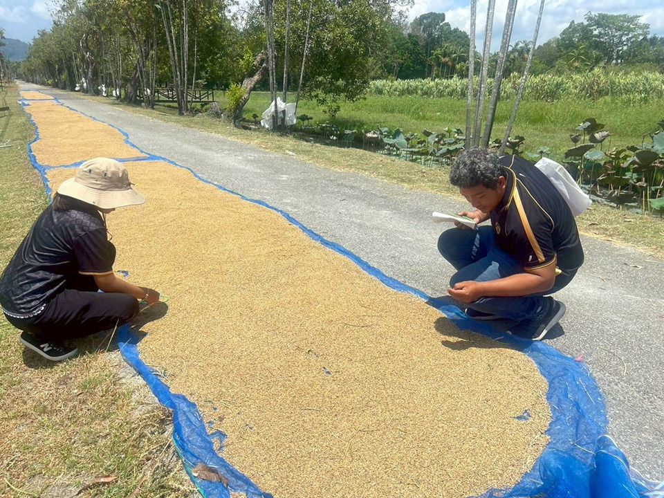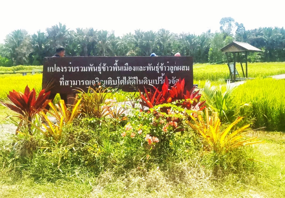 สำหรับการลงพื้นที่ในครั้งนี้ ทีมวิชาการได้ติดตามความคืบหน้าของแปลงทดสอบหลากหลายรูปแบบ ประกอบด้วย แปลงคัดเลือกพันธุ์ข้าวพื้นเมืองและพันธุ์ข้าวลูกผสมที่มีศักยภาพในการเจริญเติบโตสูง แปลงข้าวพื้นเมืองทนดินเปรี้ยวในภาคใต้ และแปลงข้าวพื้นเมืองที่นิยมปลูกในจังหวัดนราธิวาส โดยหัวใจสำคัญคือการคัดเลือกสายพันธุ์ที่มีคุณสมบัติเด่น สามารถให้ผลผลิตได้ดีใน "พื้นที่ดินเปรี้ยวจัด" ซึ่งถือเป็นข้อจำกัดทางกายภาพที่สำคัญของพื้นที่ พร้อมทั้งมีการเก็บข้อมูลการเจริญเติบโตในระยะต่างๆ เพื่อนำมาวิเคราะห์และต่อยอดสู่การแนะนำให้เกษตรกรนำไปปลูกในวงกว้างอย่างมีประสิทธิภาพ