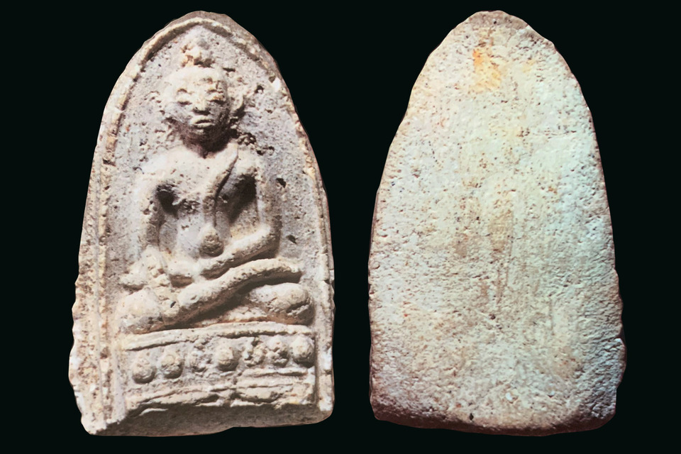 พิมพ์เล็ก เนื้อผงขาว ศิลปะหน้าตักเหมือนเลข 8 แนวนอน