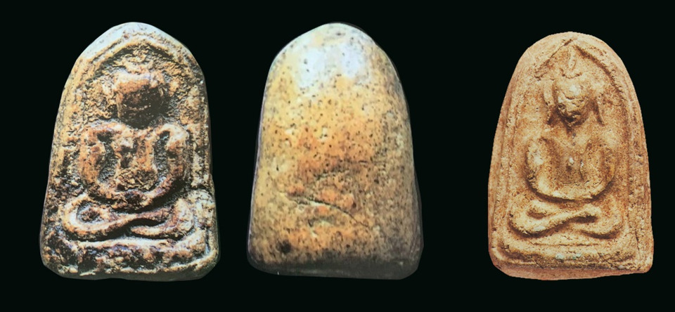 ยกตัวอย่าง พระวัดรังษี พิมพ์ใหญ่ ทั้งเนื้อผงขาว และเนื้อผงสีดำ ลงรักล่องชาดและปิดทอง หลังกดตรายันต์ มีเอกลักษณ์เฉพาะที่: