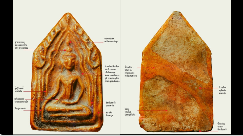 สำหรับแนวทางการพิจารณาด้านหลังขององค์พระนั้น ให้ดูลักษณะน้ำเคลือบเป็นหลัก น้ำเคลือบจะหนา สีเหมือนครั่งและเป็นรอยแตกเหมือนรอยลาน จะปรากฏไม่เต็มแผ่นหลังขององค์พระ และที่สำคัญจะมีรอยหดเหี่ยวปรากฏให้เห็นชัดเจน