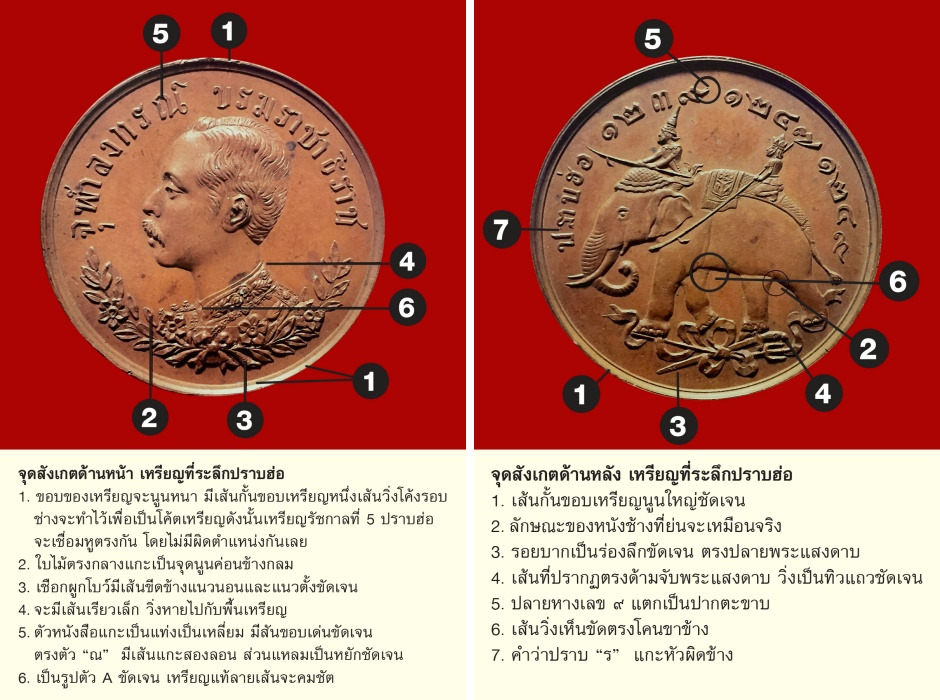 จุดสำคัญที่ใช้สังเกตในพิมพ์เหรียญที่ระลึกปราบฮ่อมีดังต่อไปนี้