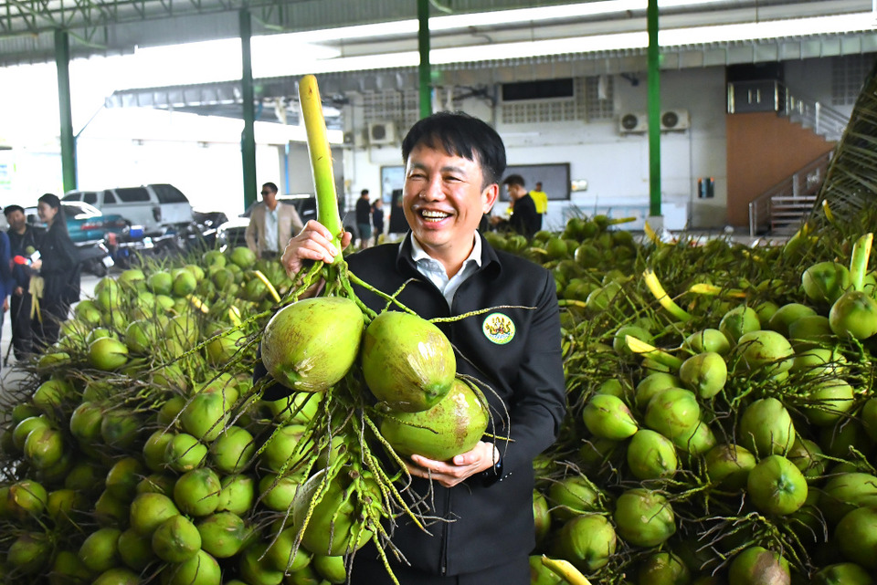 อธิบดีกรมส่งเสริมสหกรณ์ เปิดเผยว่า ในวันนี้ได้มาตรวจเยี่ยมการรวบรวมผลผลิตมะพร้าวน้ำหอมของเกษตรกรในพื้นที่จังหวัดสมุทรสาคร ขณะนี้พบว่าเกษตรกรชาวสวนมะพร้าวกำลังเผชิญปัญหาผลผลิตตกต่ำอย่างหนัก เมื่อเทียบกับเดือนกุมภาพันธ์ 2568 ราคามะพร้าวหน้าสวนเฉลี่ยลูกละ 23 - 28 บาท แต่ปัจจุบันราคาที่เกษตรกรขายหน้าสวนลดลงเหลือ ลูกละ 2 บาท กรมส่งเสริมสหกรณ์จึงหาแนวทางให้ความช่วยเหลือในเบื้องต้นเพื่อบรรเทาปัญหาและยกระดับราคาในระยะเร่งด่วน โดยใช้กลไกตลาดของเครือข่ายสหกรณ์เข้ามาช่วยแก้ปัญหาให้กับเกษตรกรชาวสวนมะพร้าวในจังหวัดสมุทรสาครและจังหวัดราชบุรี โดยมีเป้าหมายในการรวบรวมทั้ง 2 จังหวัด 1,000,000 ลูก และมีแผนกระจายผลผลิตมะพร้าวไปยังเครือข่ายสหกรณ์ในภาคตะวันออกเฉียงเหนือ 30,000 ลูก ซึ่งในวันนี้จะมีการปล่อยรถบรรทุกมะพร้าวน้ำหอมไปตลาดปลายทางที่จังหวัดร้อยเอ็ด โดยสหกรณ์การเกษตรเกษตรวิสัย จำกัด จังหวัดมหาสารคาม โดยสหกรณ์การเกษตรบรบือ จำกัด และจังหวัดยโสธร โดยสหกรณ์การเกษตรกุดชุม จำกัด สั่งซื้อจากสหกรณ์การเกษตรบ้านแพ้ว จำกัด จำนวน 20,000 ลูก ขณะที่สหกรณ์ต้นทางที่รวบรวมมะพร้าวน้ำหอมรับซื้อผลผลิตจากสมาชิกในราคาลูกละ 5 บาท และส่งขายให้เครือข่ายสหกรณ์ตลาดปลายทาง ลูกละ 6-7 บาท