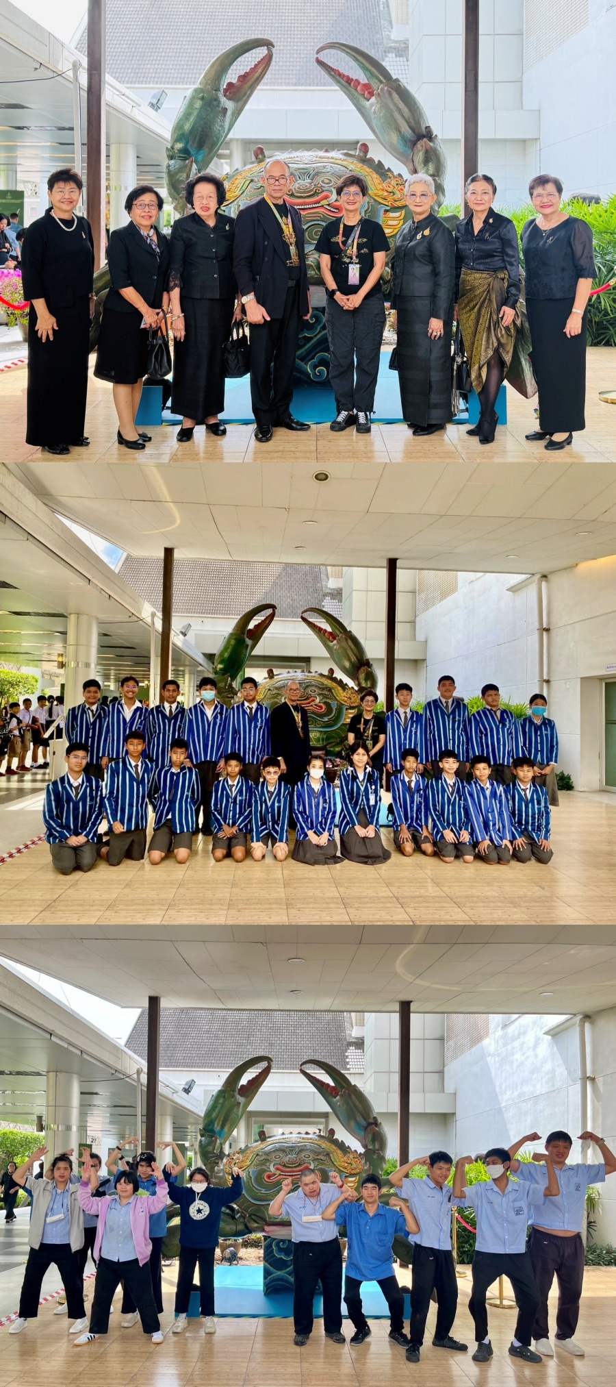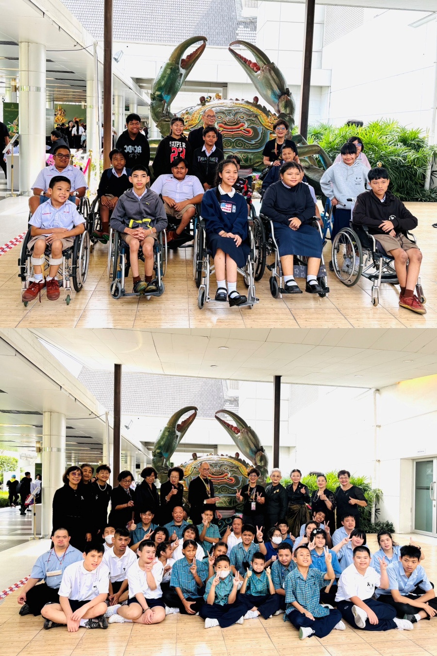 พระบาทสมเด็จพระเจ้าอยู่หัว และสมเด็จพระนางเจ้า ฯ พระบรมราชินี ทรงพระกรุณาโปรดเกล้าโปรดกระหม่อม พระราชทานพระบรมราชานุญาตให้เด็กพิการและเด็กด้อยโอกาส จากโรงเรียนศรีสังวาลย์ ของมูลนิธิอนุเคราะห์คนพิการในพระราชูปถัมภ์ ของสมเด็จพระศรีนครินทราบรมราชชนนี, มูลนิธิช่วยคนปัญญาอ่อนแห่งประเทศไทย ในพระบรมราชินูปถัมภ์ โรงเรียนแพรกษาวิเทศศึกษา (PWS) และนักเรียนด้อยโอกาสจากโรงเรียนต่างๆ เข้าชมการแสดงโขนมูลนิธิส่งเสริมศิลปาชีพฯ เรื่อง รามเกียรติ์ ตอน “สัตยาพาลี” เมื่อวันพุธที่ 19 พฤศจิกายน 2568 เวลา 14.00 น. ที่ผ่านมา ณ หอประชุมใหญ่ ศูนย์วัฒนธรรมแห่งประเทศไทย โดยมี อาจารย์สุดสาคร ชายเสม(ศิลปินแห่งชาติ) ผู้ออกแบบฉากและอุปกรณ์การแสดงให้ความรู้เรื่องโขนแก่เยาวชน และนางนฤมล ล้อมทอง กรรมการมูลนิธิส่งเสริมศิลปาชีพฯ เจ้าหน้าที่และจิตอาสาพระราชทาน ให้การดูแลอย่างใกล้ชิด