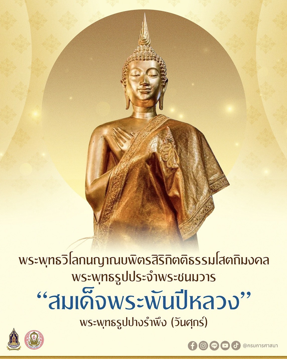 ประเพณี วัฒนธรรม : นำเกร็ดความรู้ด้านศาสนาในพิธีบำเพ็ญกุศล อุทิศถวายเป็นพระราชกุศลแด่สมเด็จพระนางเจ้าสิริกิติ์ พระบรมราชินีนาถ พระบรมราชชนนีพันปีหลวง เรื่อง : พระพุทธวิโลกนญาณบพิตรสิริกิตติธรรมโสตถิมงคล พระพุทธรูปประจำพระชนมวารของ “สมเด็จพระพันปีหลวง” โดยกรมการศาสนา กระทรวงวัฒนธรรม พฤศจิกายน 2568 เผยแพร่