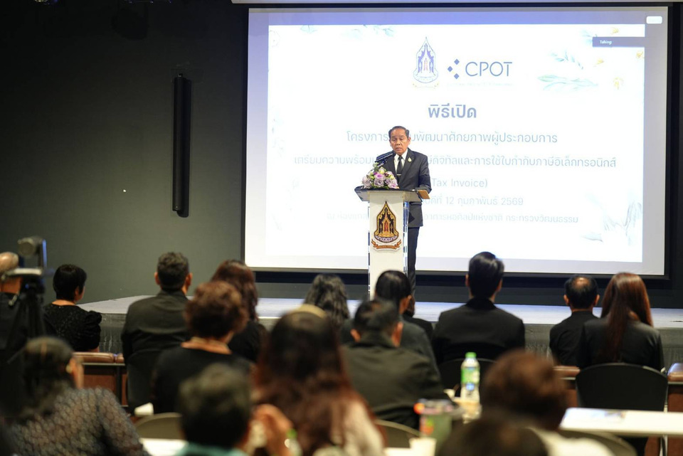 นายประสพ เรียงเงิน ปลัดกระทรวงวัฒนธรรม เปิดเผยว่า ตามที่รัฐบาลมีนโยบายขับเคลื่อนประเทศสู่ระบบเศรษฐกิจดิจิทัล เพื่อกระตุ้นเศรษฐกิจและวางรากฐานโครงสร้างพื้นฐานดิจิทัลของประเทศ กระทรวงวัฒนธรรมจึงเล็งเห็นเป็นโอกาสสำคัญที่จะเข้ามามีบทบาทในการสนับสนุนและดูแลผู้ประกอบการผลิตภัณฑ์วัฒนธรรมไทย (Cultural Product of Thailand: CPOT) ให้สามารถก้าวทันความเปลี่ยนแปลงของโลกธุรกิจ โดยเฉพาะการผลักดันการเปลี่ยนผ่านจากระบบเอกสารแบบเดิมไปสู่ระบบภาษีดิจิทัลตามมาตรฐานกรมสรรพากร ซึ่งไม่เพียงแต่จะช่วยเพิ่มประสิทธิภาพในการจัดเก็บรายได้ของรัฐเท่านั้น แต่ยังเป็น "กุญแจสำคัญ" ในการสร้างความโปร่งใส เพิ่มความน่าเชื่อถือ และยกระดับขีดความสามารถทางการแข่งขันของสินค้าวัฒนธรรมไทยให้โดดเด่นในระดับสากล