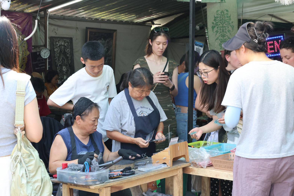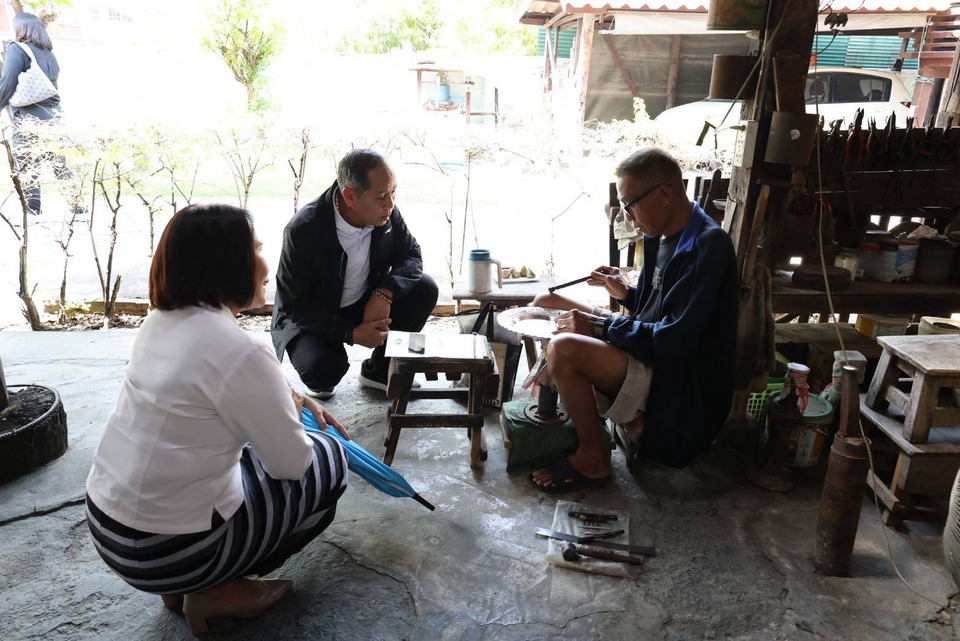 จากนั้น ปลัดกระทรวงวัฒนธรรมได้เยี่ยมชมงานช่างขึ้นรูปเครื่องเงิน ณ บ้านเมฆบังวัน โดยสล่าสุนทร ก๋องจันทร์ ช่างฝีมือท้องถิ่นที่ต่อยอดภูมิปัญญาการขึ้นรูปเครื่องเงินล้านนา พัฒนาเป็นผลิตภัณฑ์ขันเงินและงานหัตถศิลป์ สร้างรายได้และความเข้มแข็งให้แก่ชุมชน สะท้อนศักยภาพของช่างพื้นถิ่นเชียงใหม่ในการยกระดับสินค้าวัฒนธรรมสู่ตลาดท่องเที่ยว