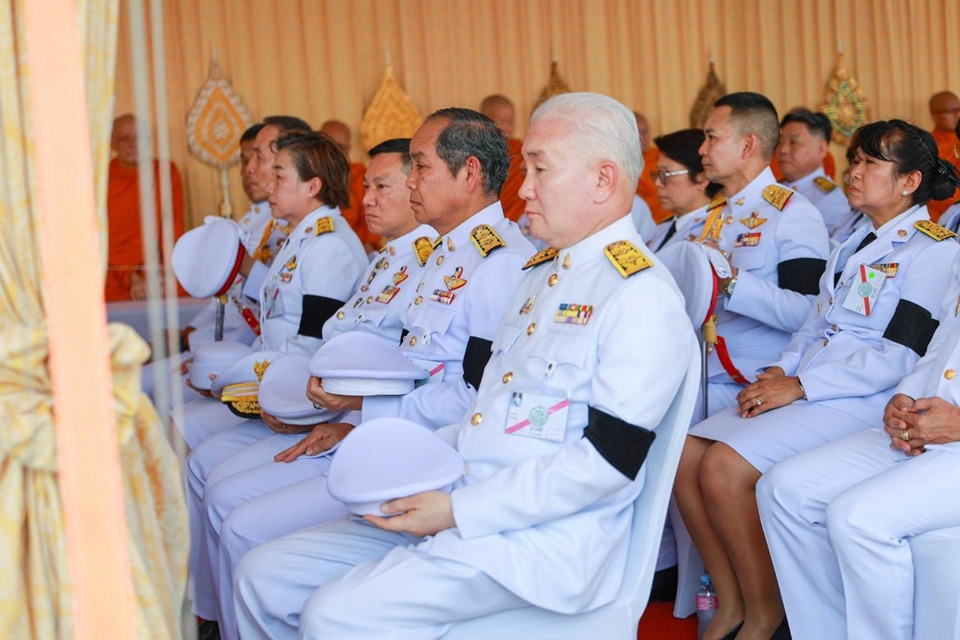 นายอนุทิน ชาญวีรกูล นายกรัฐมนตรี กราบบังคมทูลรายงาน จากนั้นสมเด็จพระกนิษฐาธิราชเจ้า กรมสมเด็จพระเทพรัตนราชสุดา ฯ สยามบรมราชกุมารี เสด็จ ฯ ไปยังมณฑลพิธีบวงสรวง ทรงจุดเทียนทอง เทียนเงิน และธูป แล้วทรงปักธูปหางที่เครื่องบวงสรวง ทรงจุดธูปเทียนเครื่องทองน้อย พระมหาราชครูพิธีศรีวิสุทธิคุณ ประธานพระครูพราหมณ์ อ่านโองการบวงสรวงเทพยดา และดวงพระวิญญาณสมเด็จพระบูรพมหากษัตริยาธิราช ในการก่อสร้างพระเมรุมาศ และอาคารประกอบ เมื่ออ่านโองการบวงสรวง จบแล้ว สมเด็จพระกนิษฐาธิราชเจ้า กรมสมเด็จพระเทพรัตนราชสุดา ฯ สยามบรมราชกุมารี ทรงพระกรุณาโปรดเกล้า ฯ ให้พระมหาราชครูพิธีศรีวิสุทธิคุณ ประธานพระครูพราหมณ์ หลั่งน้ำเทพมนตร์ เจิมและวางใบมะตูมที่เสาพระเมรุมาศ นายอนุทิน ชาญวีรกูล นายกรัฐมนตรี ปิดทอง และผูกผ้าสีชมพูที่เสาพระเมรุมาศ