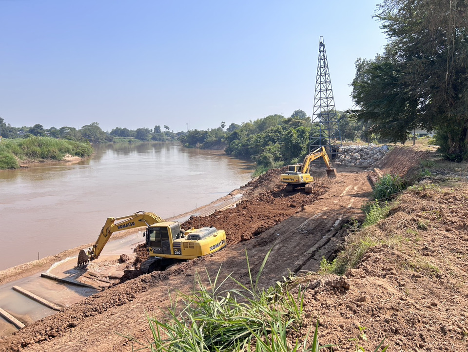 3. เมื่อตุลาคม 2567 เกิดเหตุการณ์น้ำในแม่น้ำน่านมีระดับสูงและไหลเชี่ยวแรง ส่งผลให้ตลิ่งเกิดการพังทลายตลอดแนว ความเสียหายจากภัยธรรมชาติครั้งนี้ จึงจำเป็นต้องมีการปรับแนวก่อสร้างพร้อมรูปแบบและองค์ประกอบหน้างานใหม่ เพื่อให้เกิดความมั่นคงแข็งแรงและปลอดภัยสูงสุด