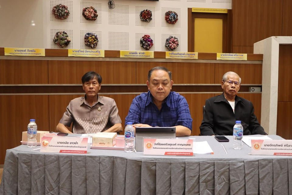 อบจ.อุดรธานีจัดประชุมหารือร่วมกับ อปท. เพื่อพัฒนาระบบน้ำประปาดื่มได้และขยายแหล่งกักเก็บน้ำต้นทุน 35 โครงการ พร้อมงบประมาณ 316 ล้านบาท เพื่อจัดหาน้ำอุปโภค-บริโภค และสำรองน้ำในฤดูแล้งให้ประชาชนในพื้นที่