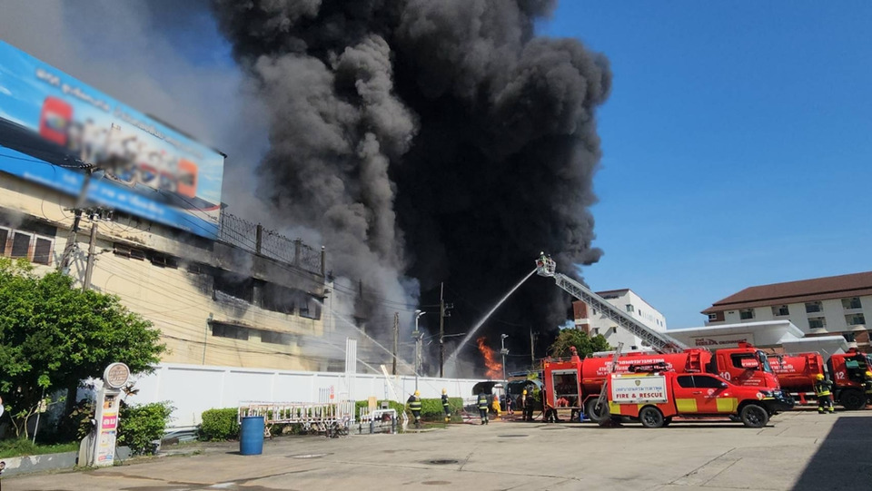 เมื่อเวลา 07.45 น. วันที่ 3 ต.ค.68 ร.ต.อ.ทองดาว โคตรหลักคำ รอง สว.(สอบสวน) สภ.เมืองระยอง ได้รับแจ้งเหตุเพลิงไหม้ร้านจำหน่ายน้ำมันเครื่อง อุปกรณ์การเกษตรและเครื่องมือช่างกลางเมืองระยอง ตั้งอยู่ริมถนนสายสุขุมวิทนครระยอง 29 เขตเทศบาลนครระยอง อ.เมืองระยอง จึงแจ้งเจ้าหน้าที่ดับเพลิงเทศบาบนคระยอง ระดมรถดับเพลิงนับ 10 คัน เข้าระงับเหตุ โดยที่เกิดเหตุพบต้นเพลิงอยู่บริเวณโกดังเก็บสินค้าประเภทน้ำมันเครื่อง อุปกรณ์การเกษตร ปั๊มน้ำ เครื่องมือช่างซึ่งเปฌนโกดังที่เชื่อมต่อจากหน้าลึกเข้าไปด้านหลัง โดยไฟได้ลุกไหม้โหมอย่างรุนแรง ควันพวยพุ่งขึ้นท้องฟ้าจนมองเห็นได้ในระยะไกล โดยมีเสียงระเบิดเป็นระยะๆ ซึ่งขณะนี้ยังไม่สามารถควบคุมเพลิงไว้ได้ โดยจุดเพลิงไหม้เป็นจุดเก็บน้ำมันเครื่องนับหมื่นลิตร ซึ่งเป็นเชื้อเพลิงอย่างดี โดยเจ้าหน้าที่ได้ระดมฉีดน้ำดับเพลิงแต่ยังไม่สามารถดับเพลิง นอกจากนี้เจ้าหน้าดับเพลิงยังได้ฉีดน้ำเลี้ยงจุดเก็บถังน้ำมันของปั๊มน้ำมันแห่งหนึ่งที่อยู่ติดโกดังเพลิงไหม้ด้วย โดยล่าสุดพบเพลิงไหม้ได้ลามติดหน้าร้านแล้ว