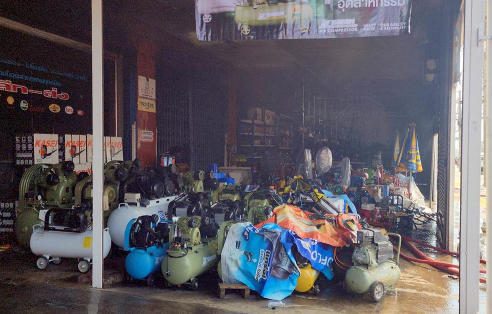เหตุเพลิงไหม้ร้านจำหน่ายน้ำมันเครื่อง เครื่องมือช่าง และอุปกรณ์การเกษตรกลางเมืองระยอง ผ่านไปกว่า 3 ชม.แล้วยังไม่สามารถควบคุมเพลิงไว้ได้ เจ้าหน้าที่ทุบกำแพงโกดังเพื่อให้สามารถเข้าไปฉีดน้ำสกัดเพื่อให้ได้สะดวกขึ้น ผกก.สภ.เมืองระยอง ระบุสาเหตุที่แน่ชัดรอพิสูจน์หลักฐานเข้าตรวจสอบอย่างละเอียด