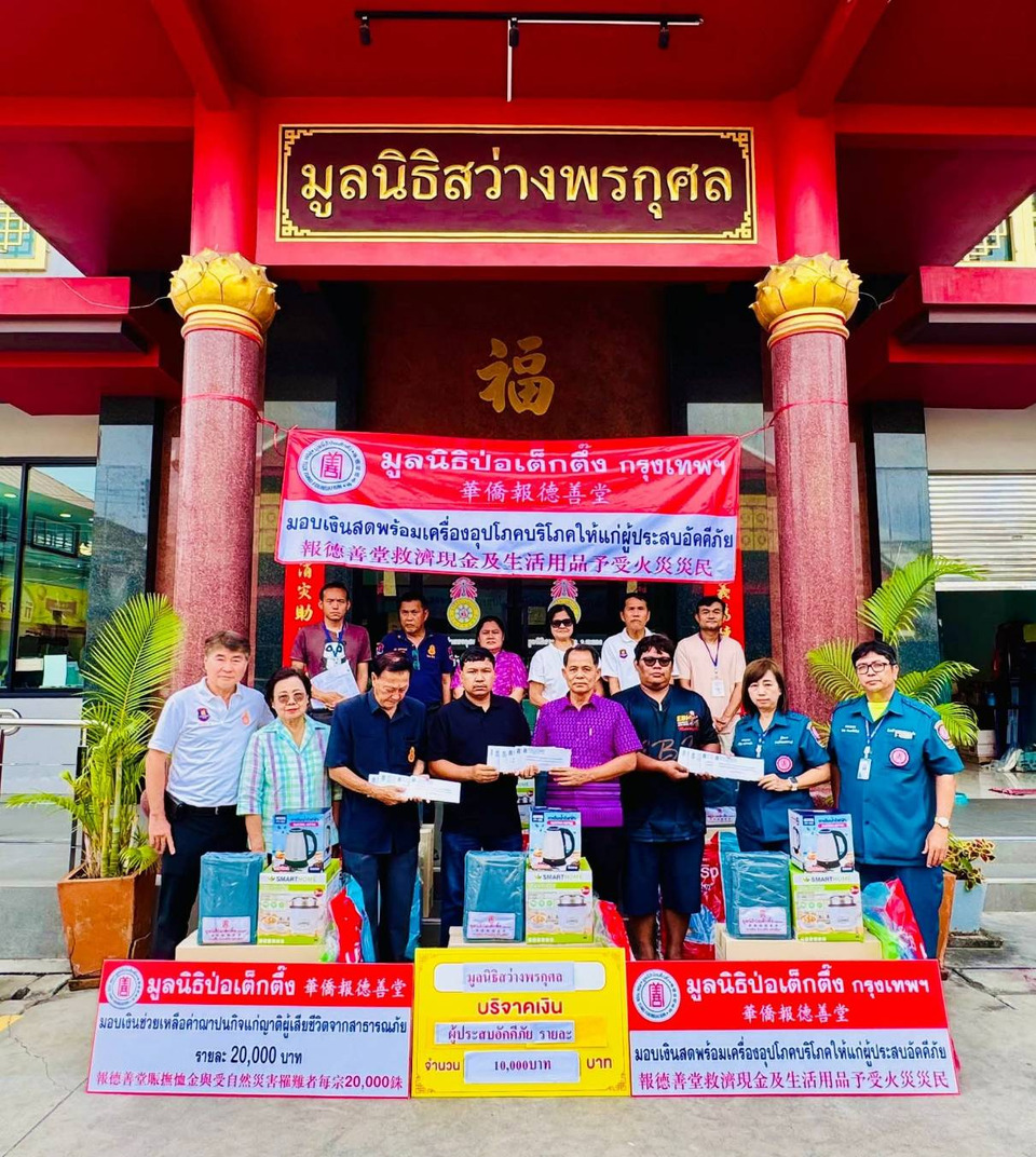 ด้าน นางศิริพร กระจ่างหล้า ผู้จัดการฝ่ายสังคมสงเคราะห์ มูลนิธิปอเต็กตึ้ง กล่าวว่า ทางมูลนิธิได้ติดตามข่าวเหตุการณ์เพลิงไหม้ด้วยความห่วงใย เมื่อทราบถึงจำนวนผู้เสียชีวิตและความเสียหาย จึงได้ประสานมายังมูลนิธิสว่างพรกุศลจังหวัดระยอง เพื่อร่วมมอบความช่วยเหลือและกำลังใจแก่ครอบครัวผู้ประสบภัยให้สามารถก้าวผ่านช่วงเวลาแห่งความสูญเสียไปได้