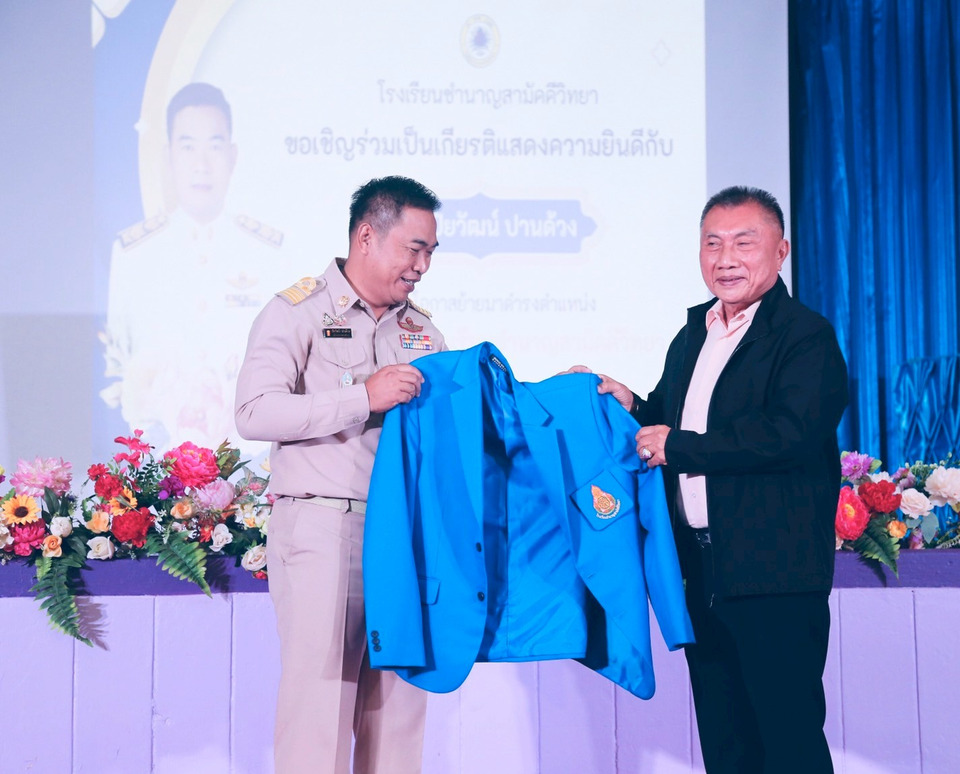 เมื่อเวลา 09.00 น. วันที่ 9 ตุลาคม 2568 ที่ศูนย์เทคโนโลยีทางการศึกษาเกษมรัตนากร โรงเรียนชำนาญสามัคคีวิทยา ต.คลองปูน อ.แกลง จ.ระยอง ได้จัดพิธีต้อนรับ นายปิยวัฒน์ ปานด้วง ผู้อำนวยการโรงเรียนชำนาญสามัคคีวิทยา คนใหม่ ซึ่งได้รับการแต่งตั้งตามคำสั่งสำนักงานเขตพื้นที่การศึกษามัธยมศึกษาชลบุรี–ระยอง โดยมี นายทิวัตถ์ ผ่องแผ้ว ประธานคณะกรรมการสถานศึกษาขั้นพื้นฐานโรงเรียนชำนาญสามัคคีวิทยา พร้อมด้วยนายจักรพันธ์ กสิกรรม ประธานคณะกรรมการสถานศึกษาโรงเรียนสุนทรภู่พิทยาคม นายทวีสิทธิ์ อิศรเดช ประธานชมรมผู้บริหารโรงเรียนมัธยมศึกษาจังหวัดระยอง คณะผู้บริหารโรงเรียนในพื้นที่ คณะกรรมการสถานศึกษา ชมรมครูพละจังหวัดระยอง สมาคมผู้ปกครอง คณะครู บุคลากรทางการศึกษา และนักเรียน ร่วมแสดงความยินดีและให้การต้อนรับอย่างอบอุ่น ในการนี้นางวราลี กุมภะ นายกเทศมนตรีตำบลทุ่งควายกิน พร้อมคณะผู้บริหารให้เกียรติร่วมแสดงความยินดีด้วย